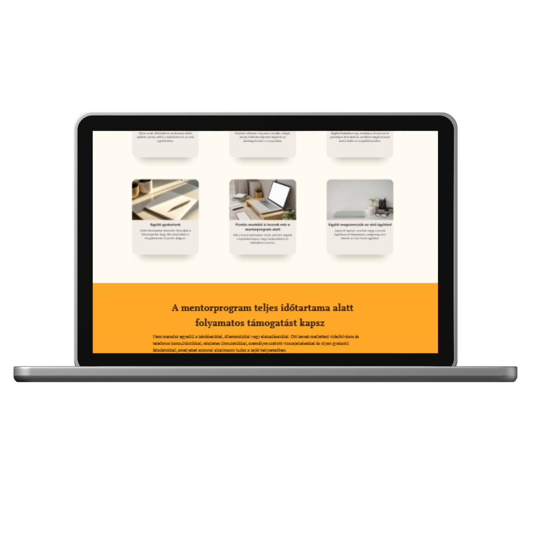 Kapcsolatot egy tapasztalt mentorral, személyre szabott iránymutatást és kipróbált, működő megoldásokat. Támogatást és motivációt a nehéz pillanatokban, valamint rendszert és fókuszt a céljaid eléréséhez.